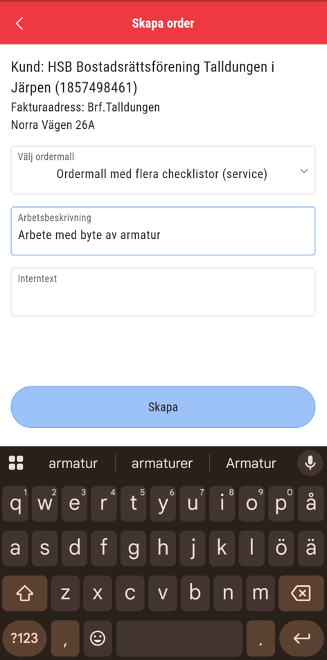 Vi har uppdaterat mobilappen med en efterlängtad funktion – nu kan du registrera arbetsbeskrivningen redan när du skapar en ny order.
